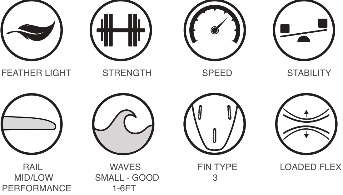 The Neutrino will work well in surf 1 to 6 foot, best for grovel sessions.