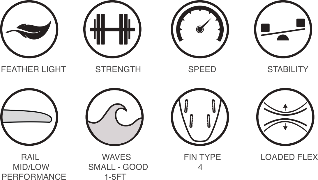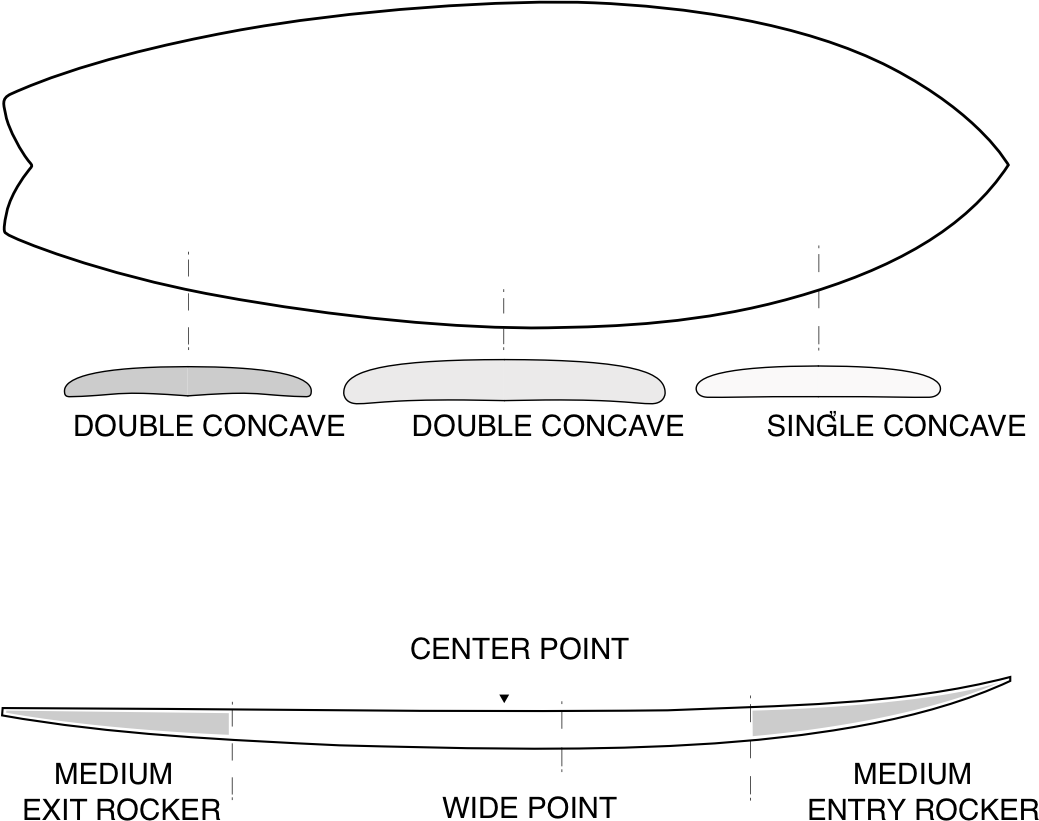 One of our most popular outlines, this shape is inviting, fun and forgiving, with plenty of paddle power. Updated from the Go Fish, it has less area in the tail, narrowed tops of the swallow, creating more curve and a narrowed nose.